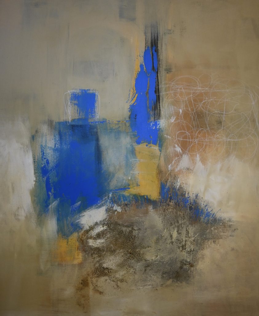 In ihrem Atelier entstehen neben abstrakten Werken auch viele figurative Arbeiten. Ihre Bilder sind meist geprägt von verschiedenen Oberflächen und unterschiedlichen Materialien.